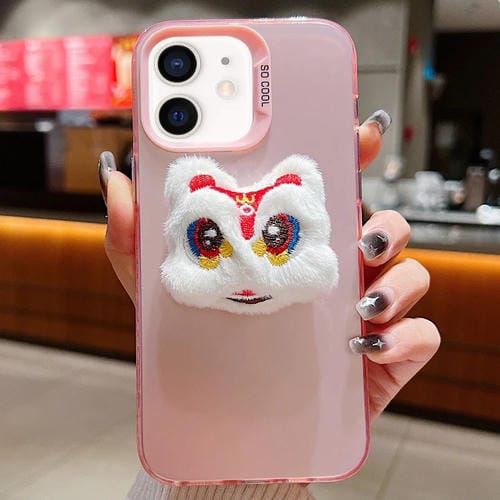 Funda para iPhone 11 Felpa Danza del León Año Nuevo (León Blanco Trasero Rosado)