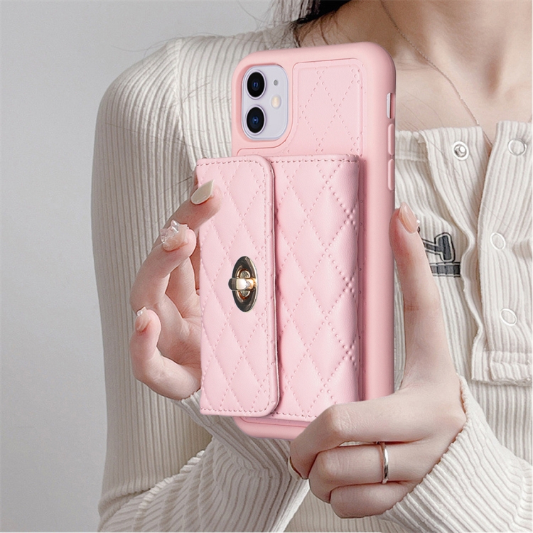 Funda Cartera iPhone 11 Hebilla Metal Horizontal Estuche Cuero Rómbico (Rosa)