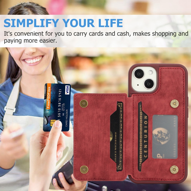 Funda para iPhone 11 Dream Magnetic Back Cover Card Wallet (Rojo)