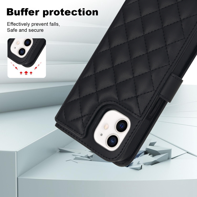 Funda Cruzada de Cuero Rómbico para iPhone 11 Multifunción (Negro)