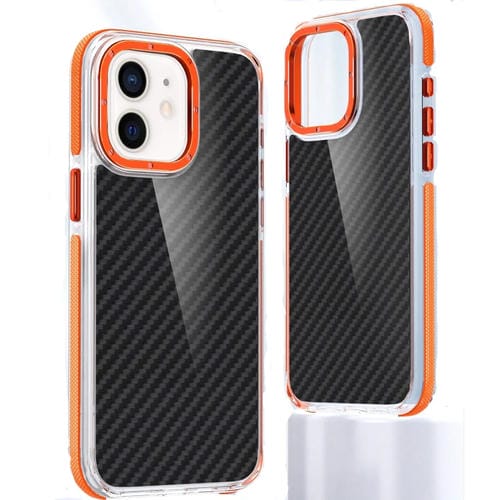 Funda de teléfono híbrida TPU acrílica fibra de carbono para iPhone 11 (Naranja)