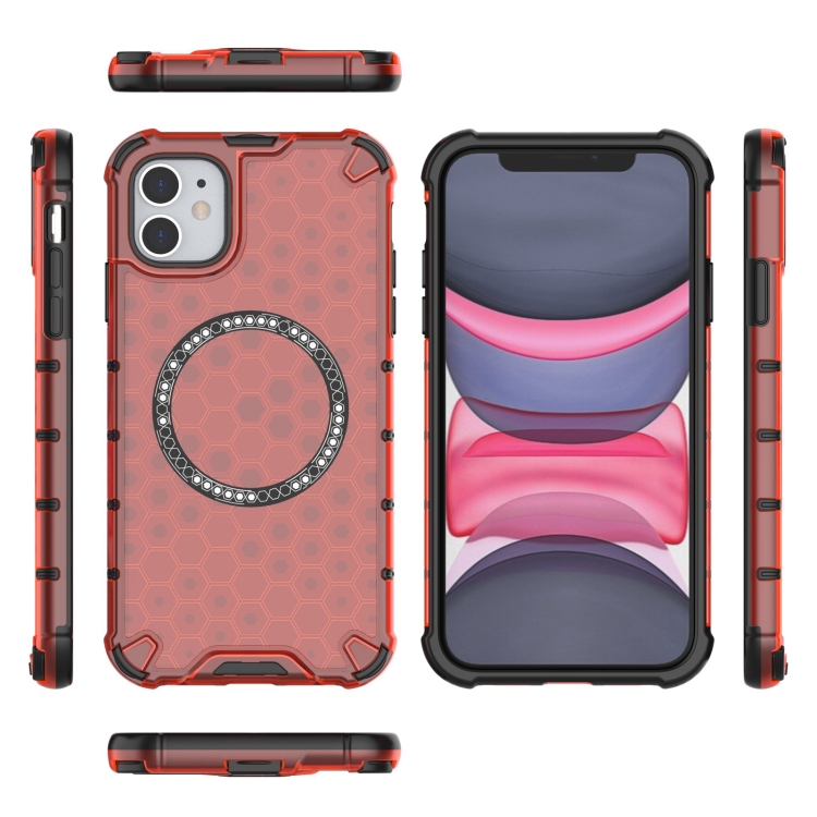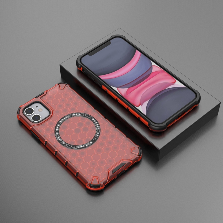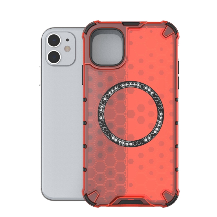 Funda para Teléfono iPhone 11 a Prueba de Golpes con Anillo Magnético en Forma de Panal (Rojo)