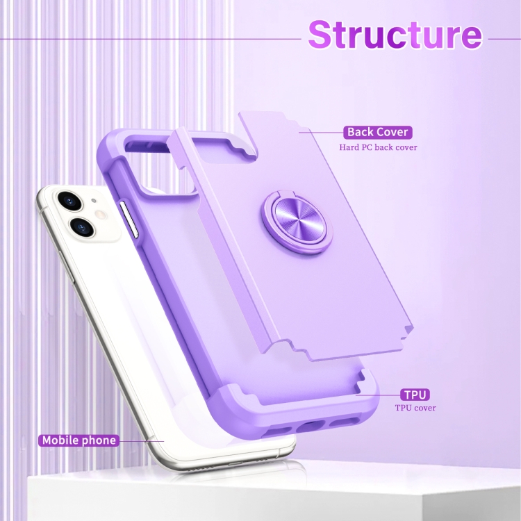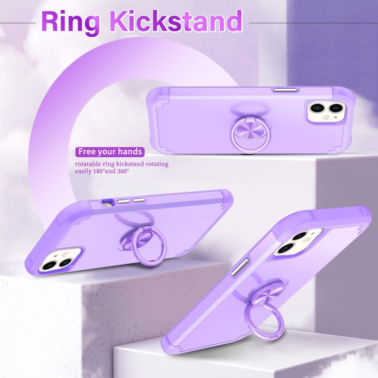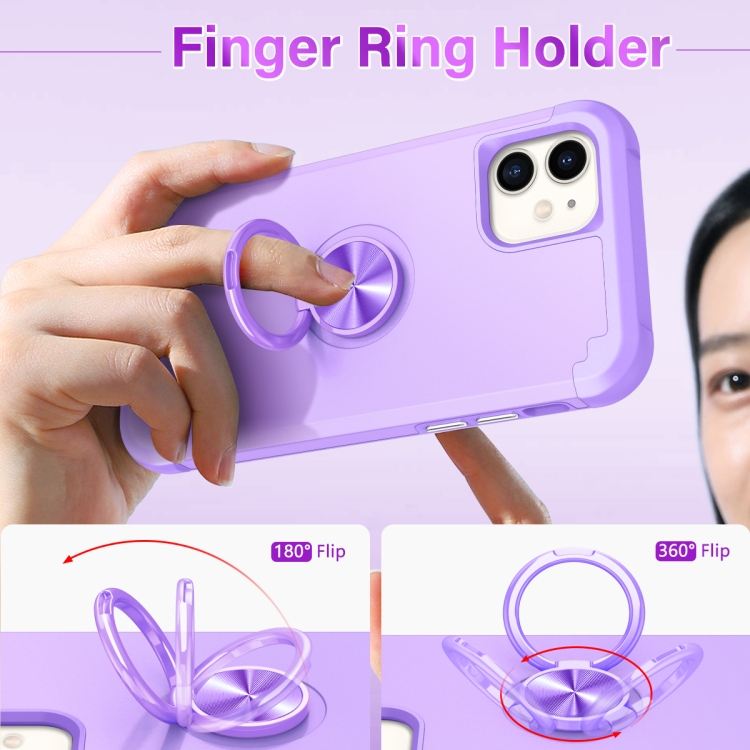 Funda Magnética para iPhone 11 L2 con Soporte de Anillo Giratorio (Púrpura Claro)