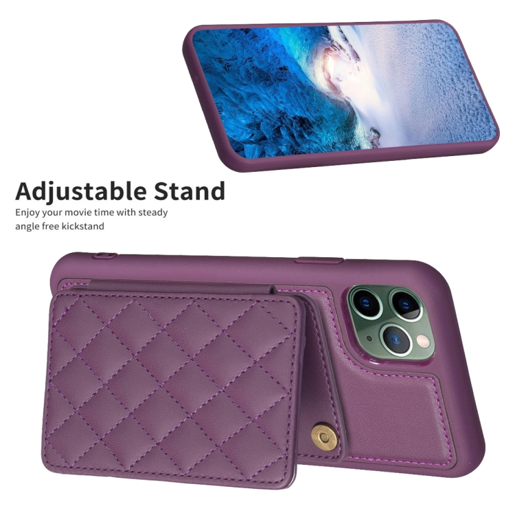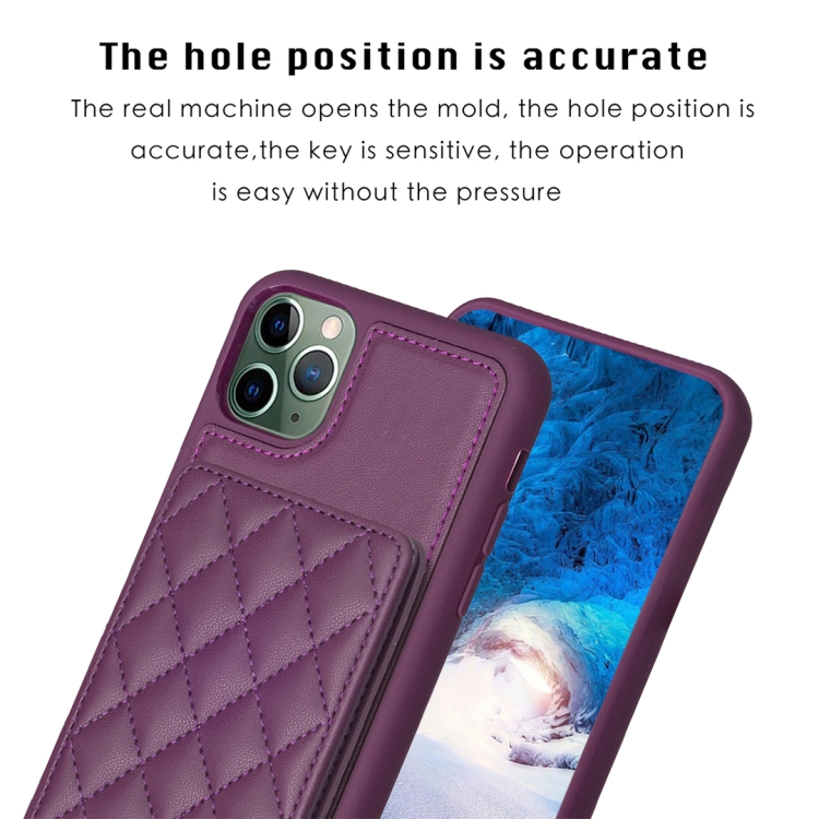 Funda para iPhone 11 Pro Bf25 Square Plaid Porta Tarjetas Bolsa (Morado Oscuro)
