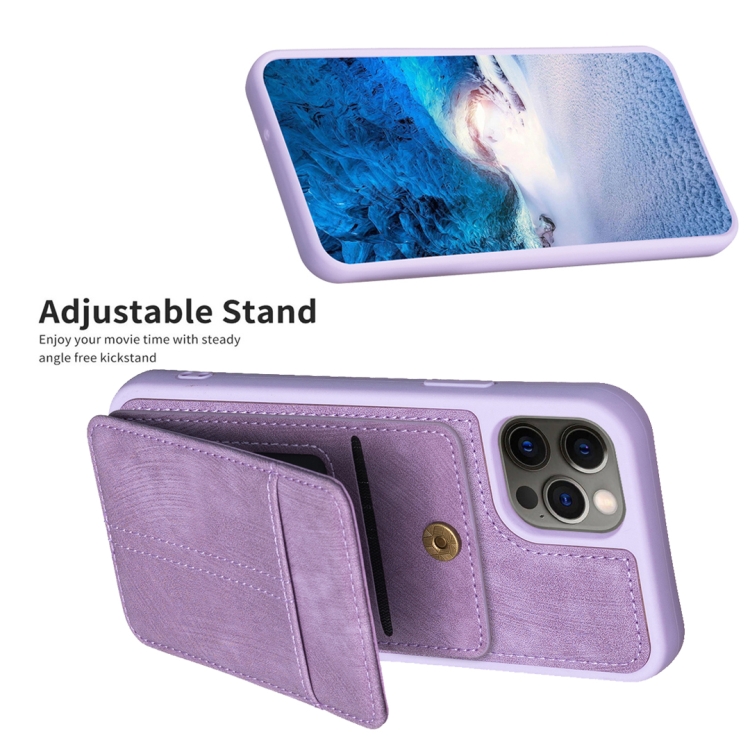 Estuche para Teléfono Bf28 para iPhone 11 Pro con Bolsa para Tarjetas Esmerilada y Soporte (Púrpura)