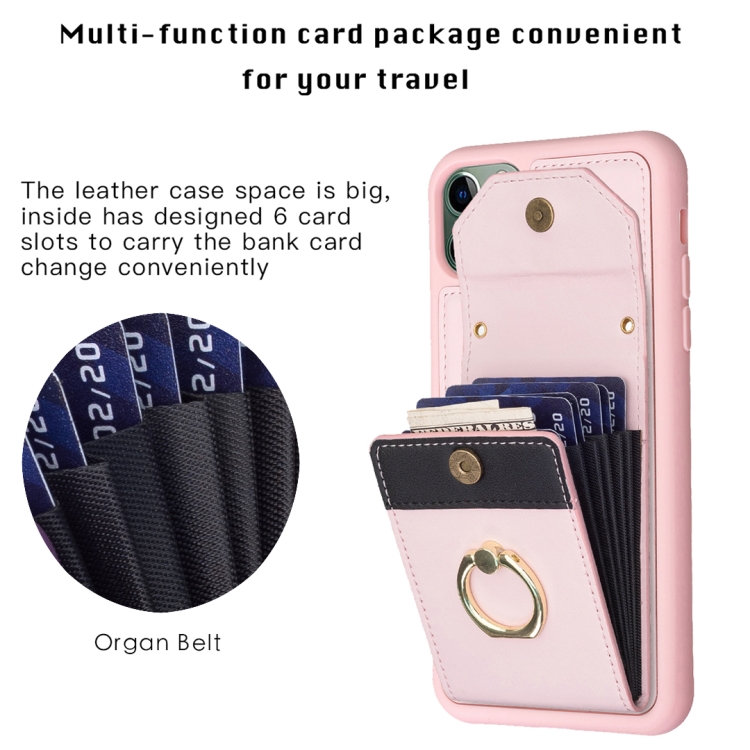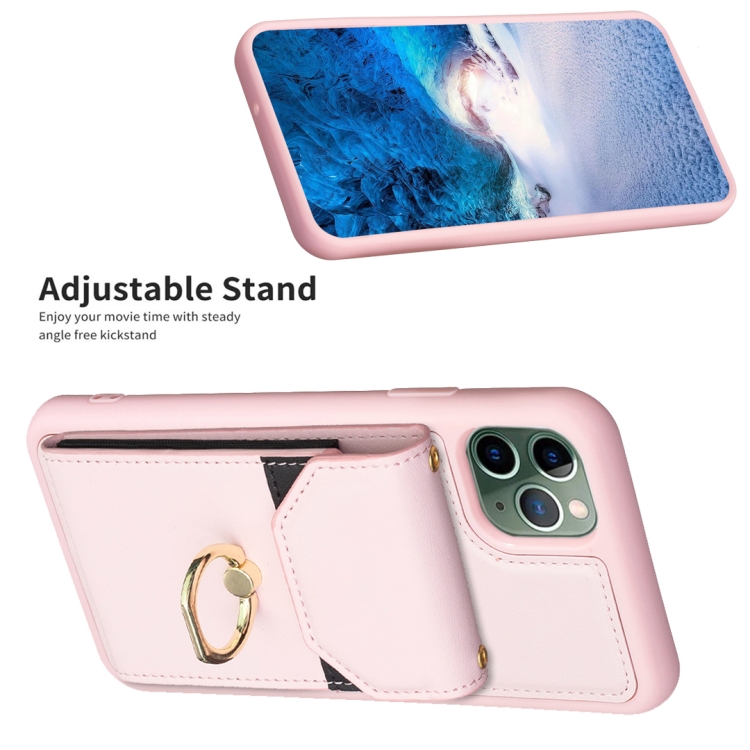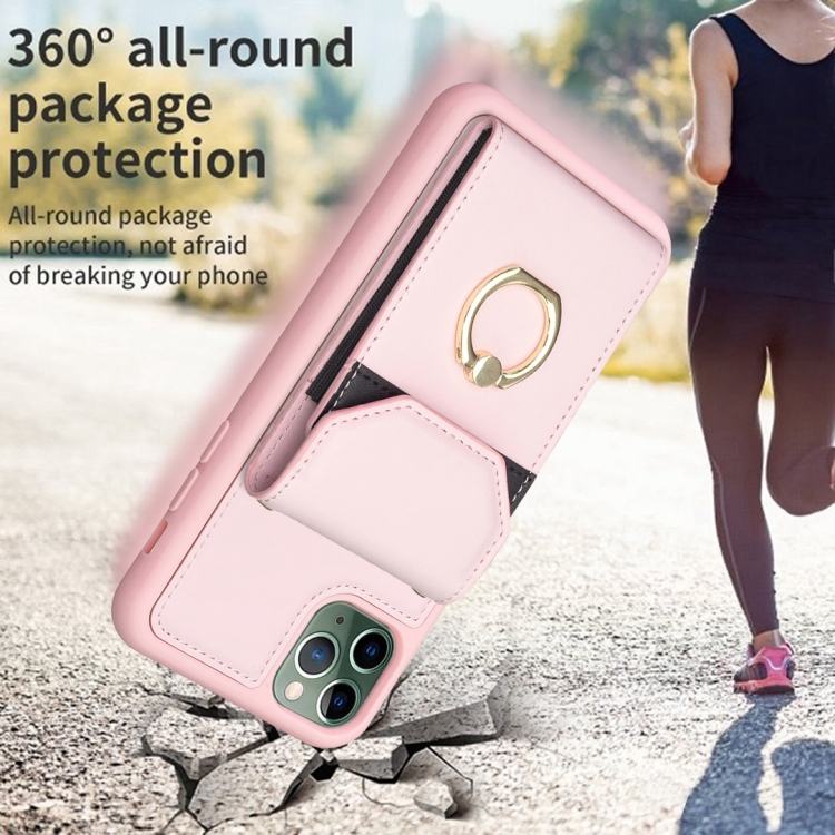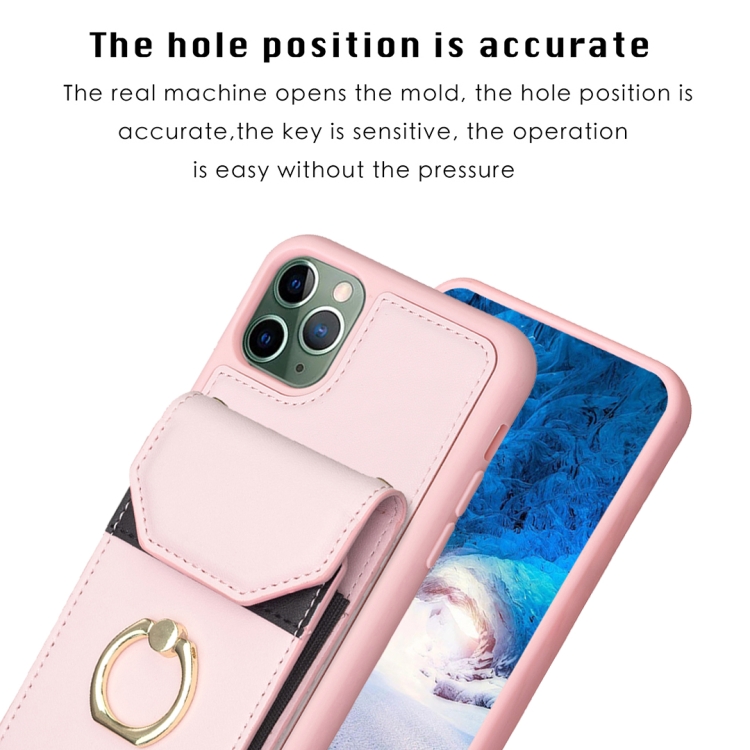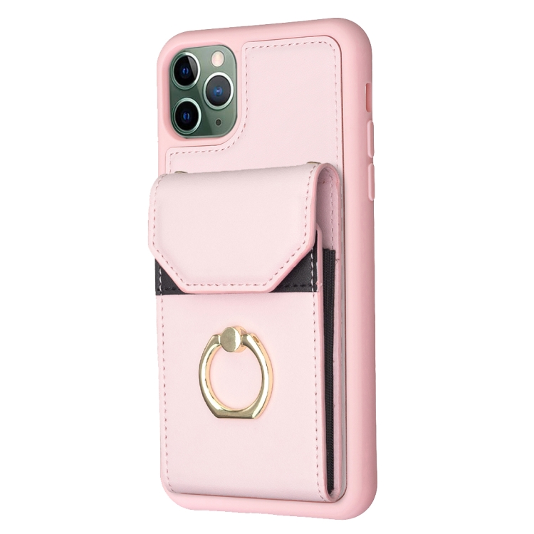Funda para Teléfono Bf29 para iPhone 11 Pro con Soporte para Anillo y Bolsa para Tarjeta (Rosa)