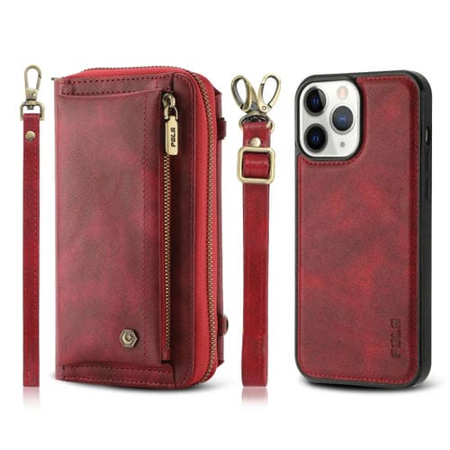 Funda de Cuero Crossbody para iPhone 11 Pro con Billetera y Cremallera Multifuncional (Rojo)