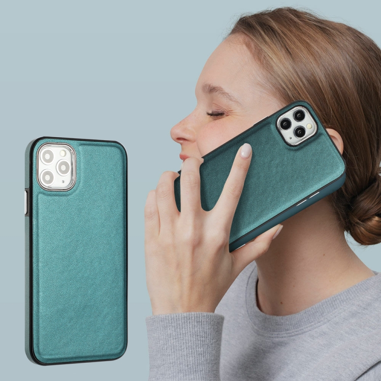 Funda de Teléfono para iPhone 11 Pro Cobertura Total Textura de Cuero (Verde)