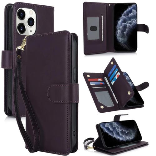 Funda para Teléfono iPhone 11 Pro Cuero Rfid con Billetera MultiTarjeta (Púrpura Oscuro)