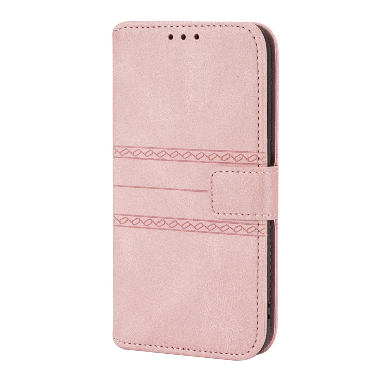 Funda para iPhone 11 Pro PU + TPU Hebilla Magnética a Rayas con Soporte y Billetera (Rosa)