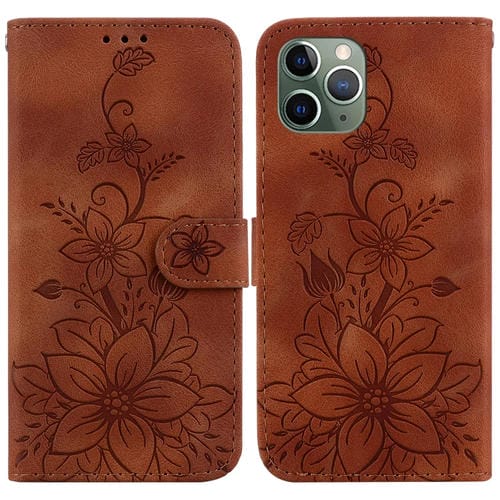 Estuche para Teléfono iPhone 11 Pro Lily Cuero En Relieve (Marrón)