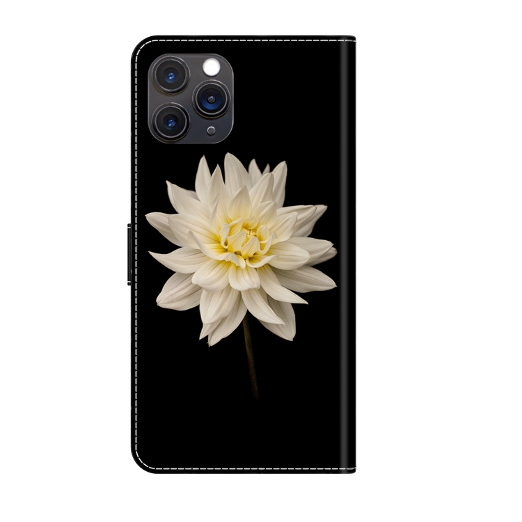 For iPhone 11 Pro Max Crystal 3D Shockproof Leather Protective Phone Case (White Flower)
