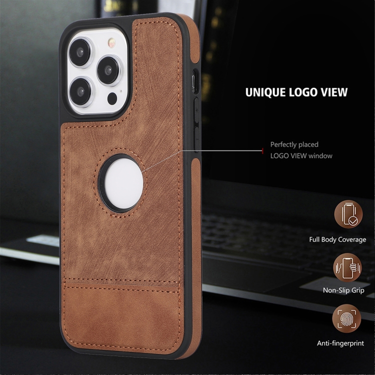 Funda para iPhone 11 Pro Max Empalme Costura Caja de Teléfono de PU con Recorte (Marrón)