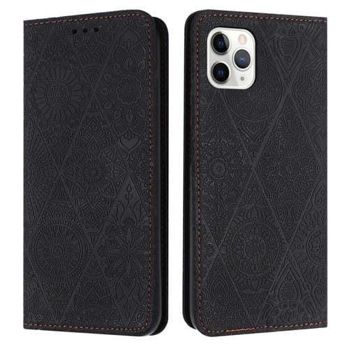 Estuche para teléfono iPhone 11 Pro Max cuero adsorción en relieve étnico (Negro)