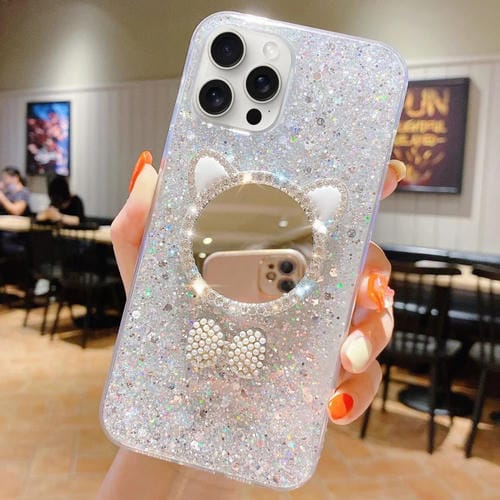 Estuche para Teléfono TPU Epoxi iPhone 11 Pro Max Orejas de Gato y Diamantes con Lentejuelas Estrelladas (Plateado)