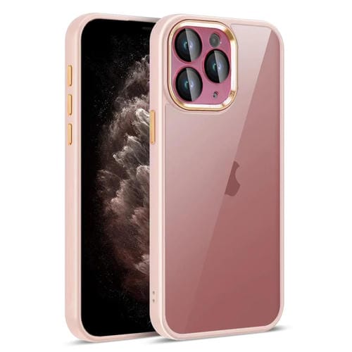 Estuche para teléfono iPhone 11 Pro Max Translúcido con Película de Lente de Armadura Colorida (Rosa)