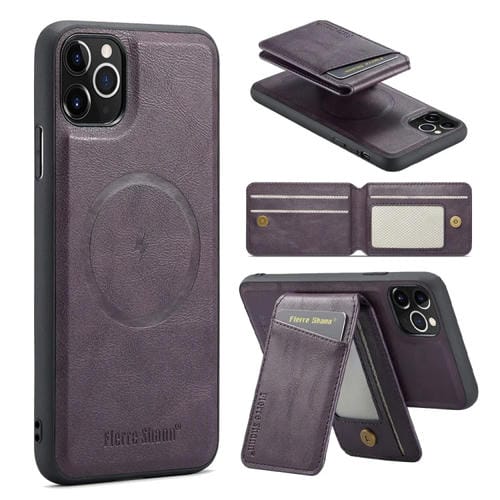 Funda para teléfono Fierre Shann iPhone 11 Pro Max Oil Wax con tarjetero magnético de cuero de vaca (Púrpura)