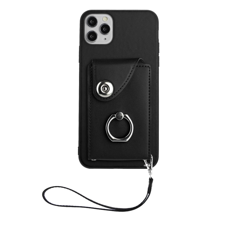 Funda para Teléfono iPhone 11 Pro Max PU con Soporte para Anillo y Bolsa para Tarjeta con Cordón (Negro)