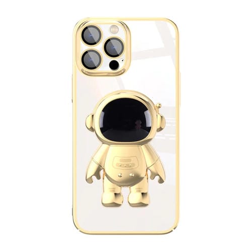 Funda para iPhone 11 Pro Max Galvanoplastia PC Astronaut Holder con Lente Film (Oro)