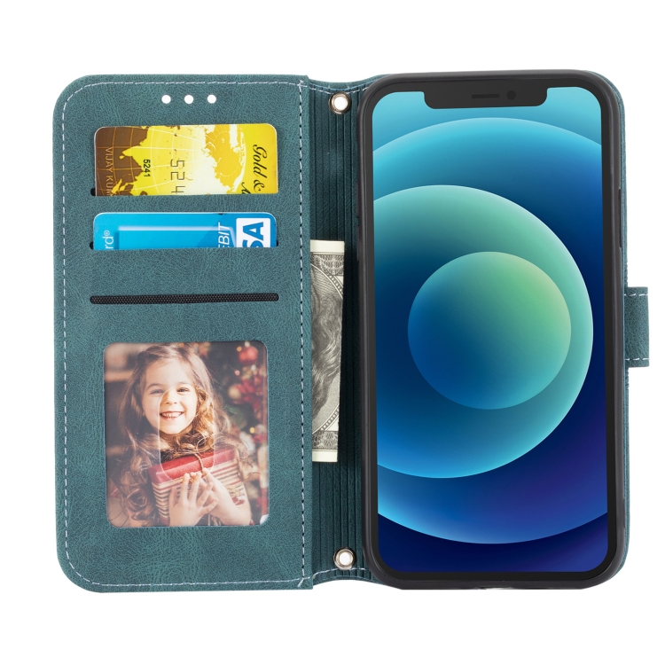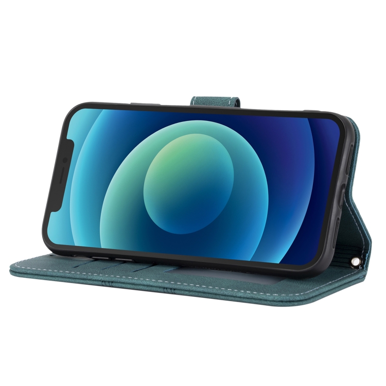 Funda de Cuero para iPhone 11 Pro Max Hebilla Magnética a Rayas En Relieve Pu + TPU con Soporte y Ranura para Tarjeta (Verde)