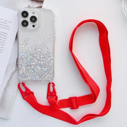 Funda para iPhone 11 Pro Max Lanyard Glitter Epoxy Clear Phone Case (Rojo)