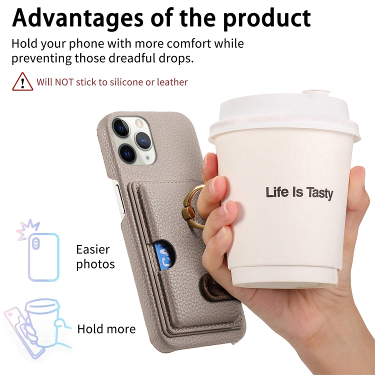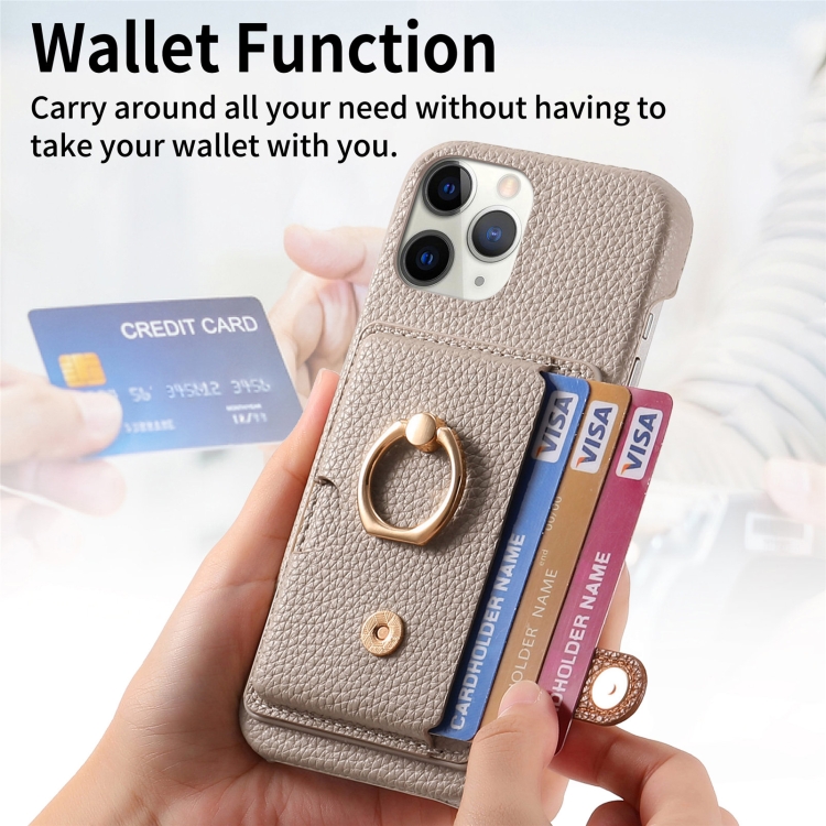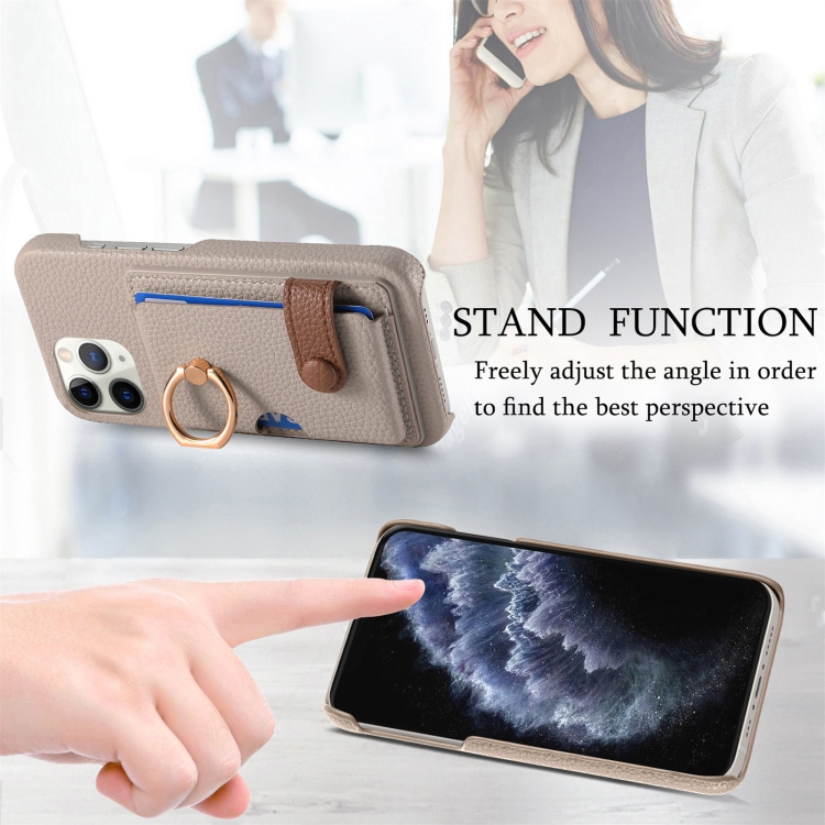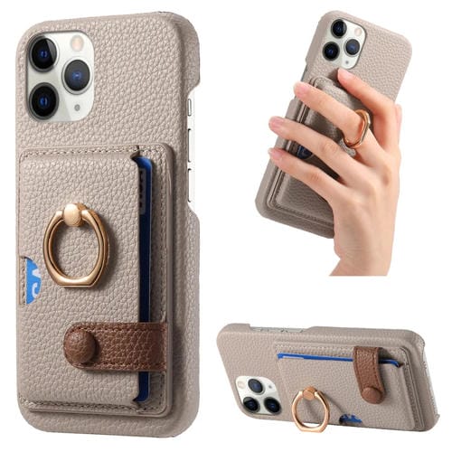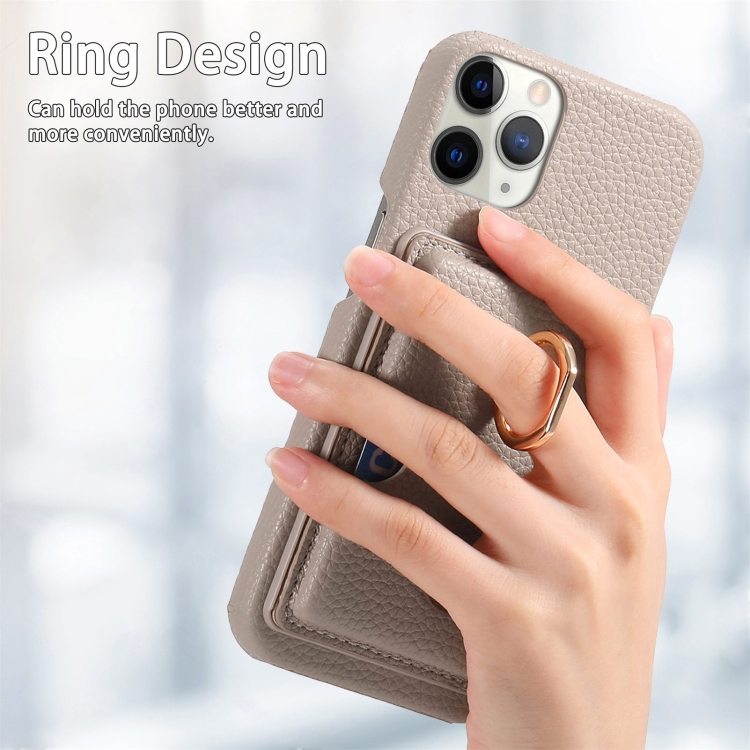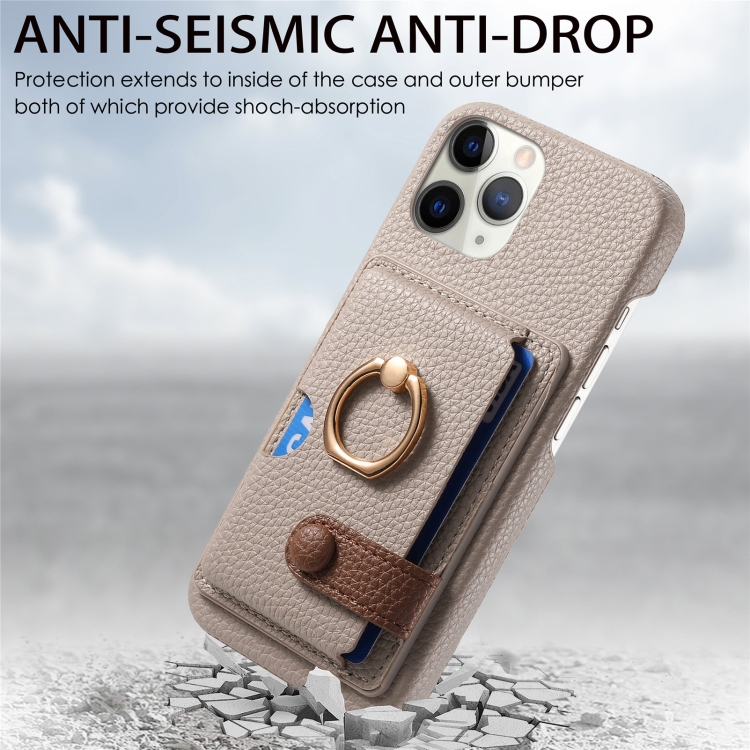 Funda para teléfono iPhone 11 Pro Max Litchi Leather Oil Edge Ring Card Back (Caqui)