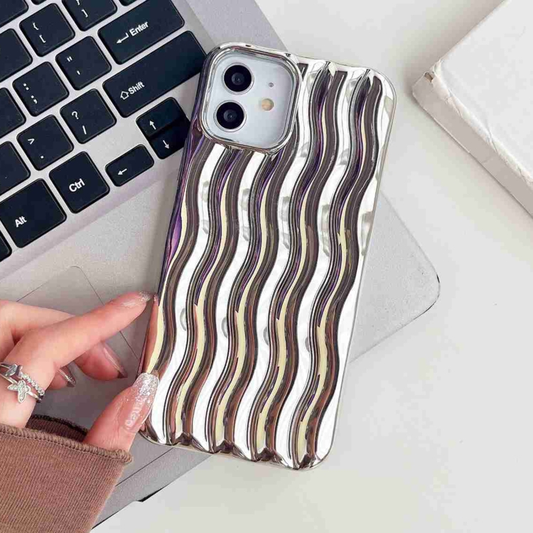 Funda para iPhone 11 Pro Max Plating 3D Water Wave Texture Phone Case (Plata)