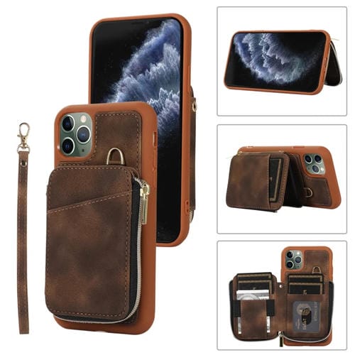 Funda para Teléfono iPhone 11 Pro Max Zipper Card Bag Contraportada (Marrón)