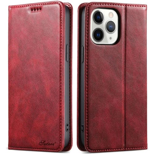 Funda para Teléfono Suteni J02 iPhone 11 Pro Cuero con Billetera Cera de Aceite (Rojo)