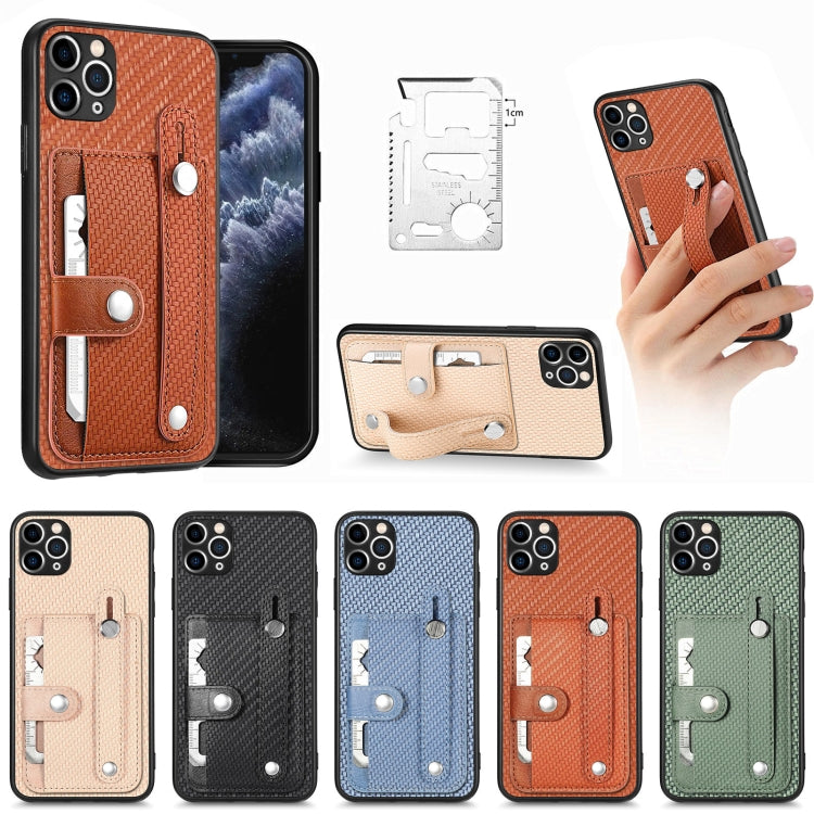 Funda para iPhone 11 Pro Wristband Kickstand Card Wallet Back Cover con Tool Knife (Marrón)