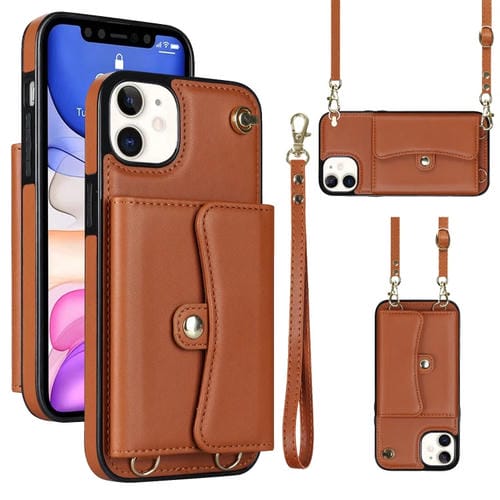 Estuche para Teléfono iPhone 11 Ranura para Tarjeta RFID con Cordón Largo (Marrón)