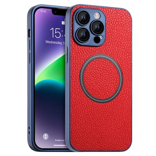 Funda para iPhone 11 Skin Feel Litchi Texture Magsafe Magnética (Rojo)