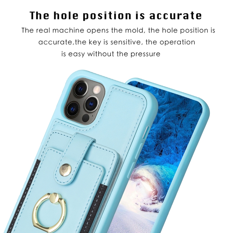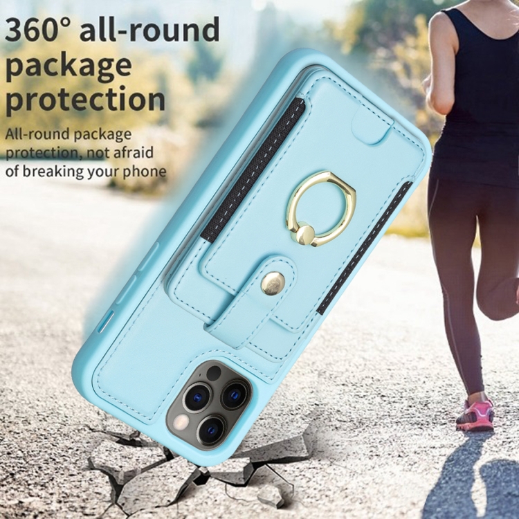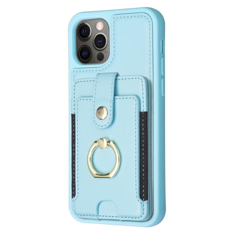 Funda para Teléfono Bf27 para iPhone 12/12 Pro con Soporte para Tarjeta y Anillo de Metal (Azul)