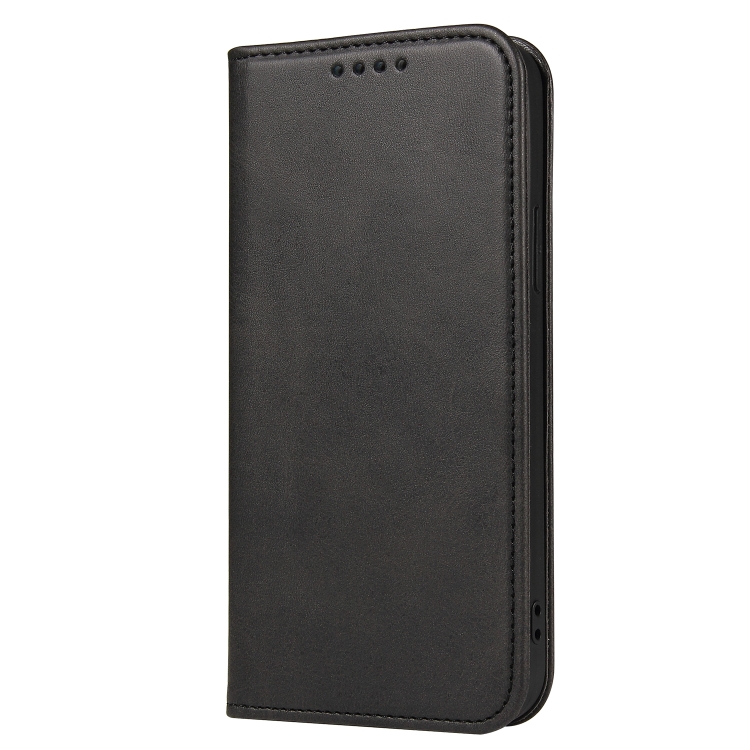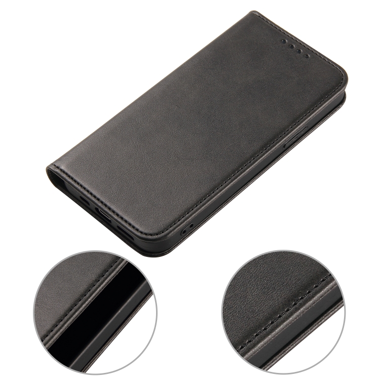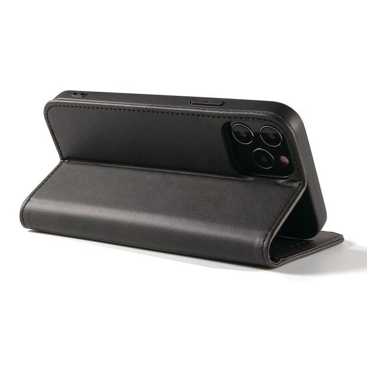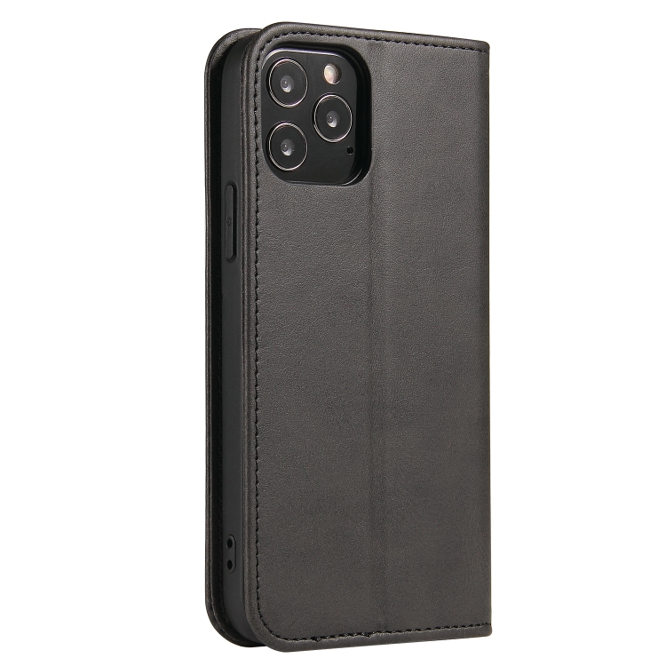 Funda de Cuero iPhone 12/12 Pro Calf Texture con Tapa Magnética Soporte y Ranuras (Negro)