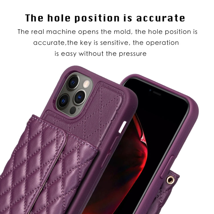 Estuche de Teléfono iPhone 12 / 12 Pro Cuero Rómbico con Billetera Horizontal (Púrpura Oscuro)