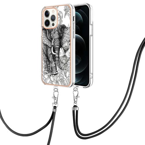Estuche para teléfono iPhone 12/12 Pro Imd doble cara con galvanoplastia y cordón (Totem Elephant)