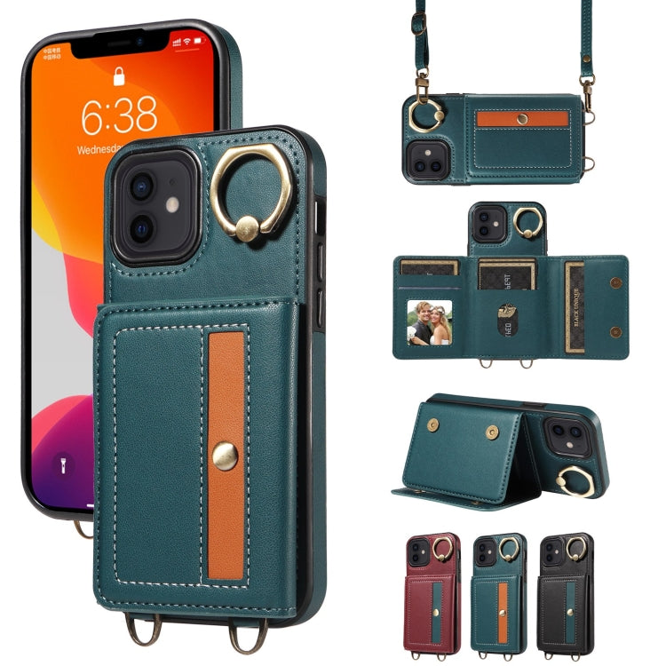 Funda para Teléfono iPhone 12/12 Pro Cuero con Soporte para Anillo y Bolso Cruzado para Tarjetas (Verde)