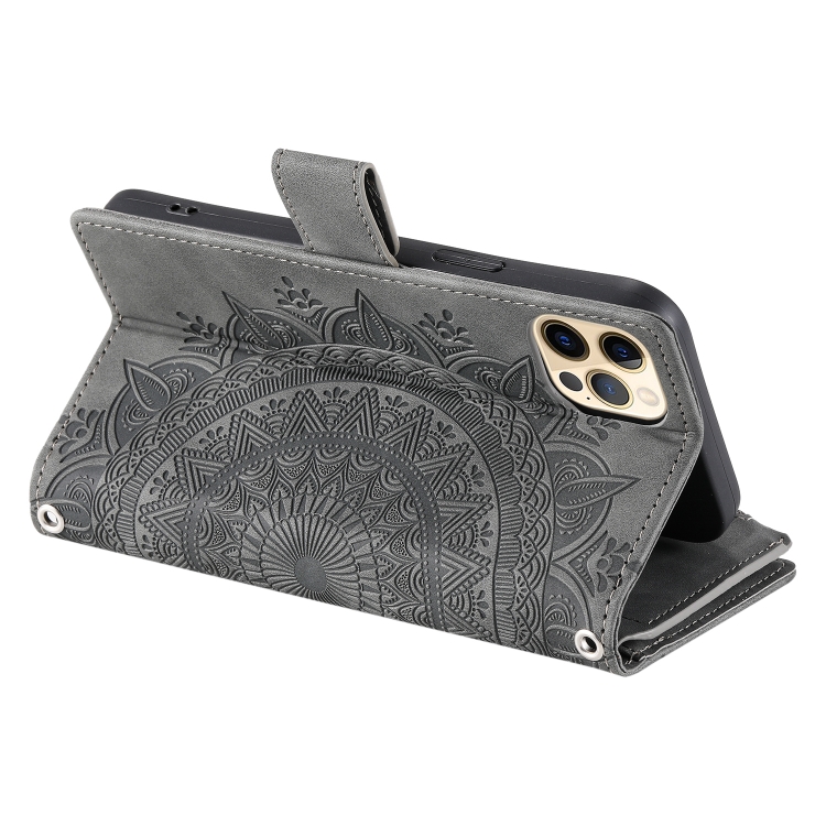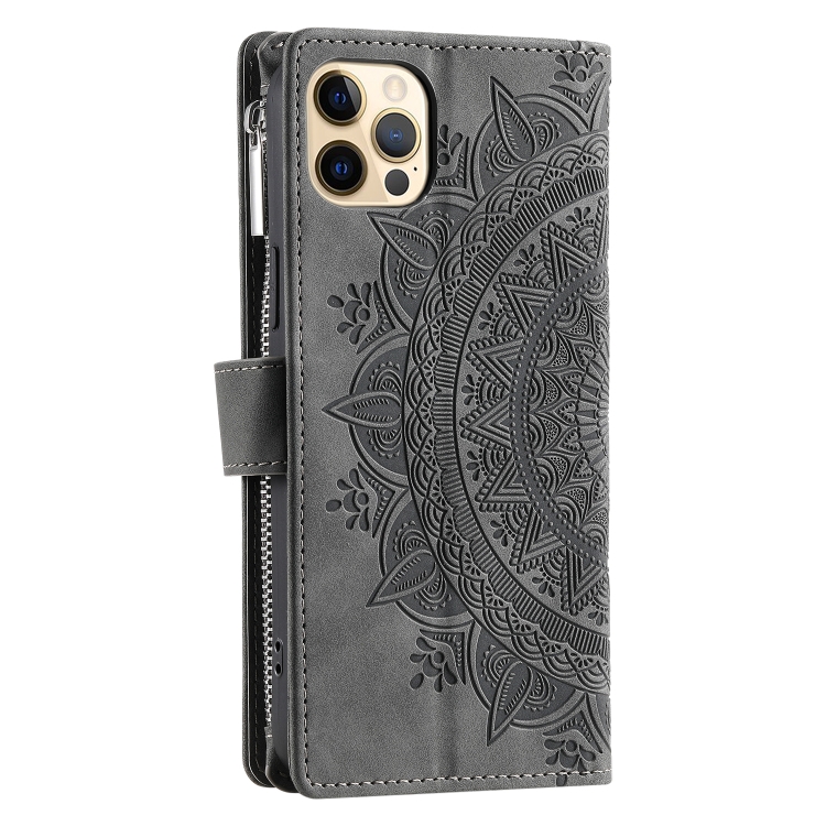 Funda para Teléfono iPhone 12/12 Pro Cuero con Cremallera Totem Múltiples Tarjetas (Gris)