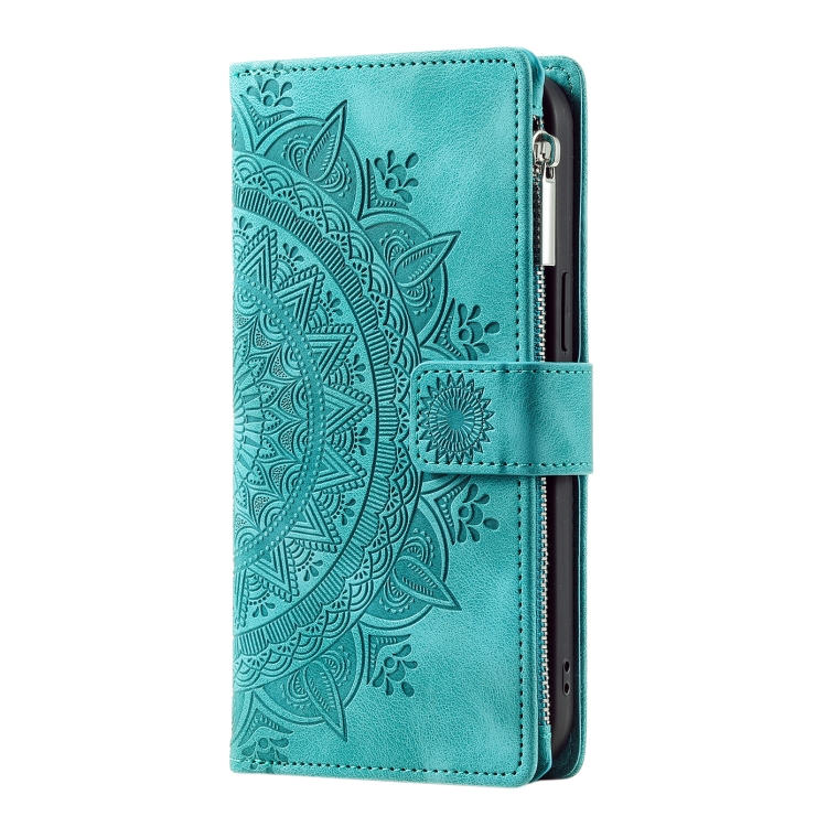 Funda para Teléfono iPhone 12/12 Pro Cuero con Cremallera Totem Múltiples Tarjetas (Verde)