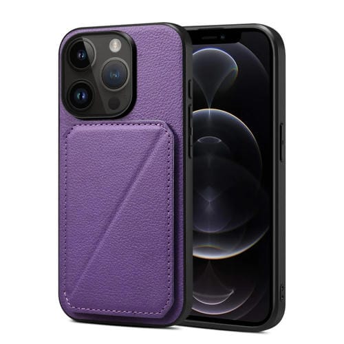 Funda Trasera para Teléfono iPhone 12/12 Pro Piel de Becerro de Imitación con Soporte (Púrpura)