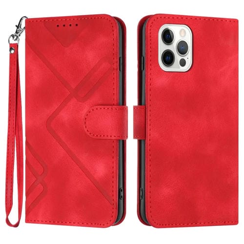 Funda para iPhone 12/12 Pro Line Pattern Skin Feel Leather Phone Case (Rojo)