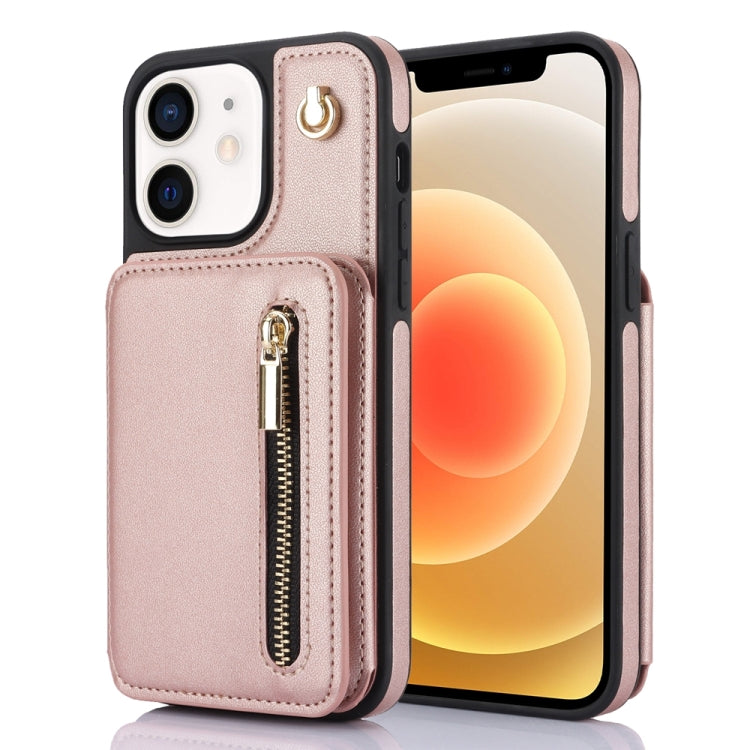 Estuche para Teléfono Ym006 para iPhone 12/12 Pro con Bolsa para Tarjetas Cremallera y Cordón Doble (Oro Rosa)