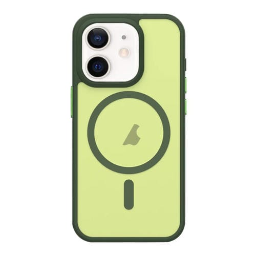 Estuche para Teléfono iPhone 12 Botón de Metal Sensación de Piel Magsafe Mate a Prueba de Golpes (Verde)