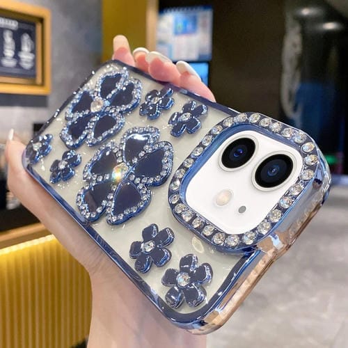 For iPhone 12 Electroplating Flower Diamond TPU Phone Case (Blue)