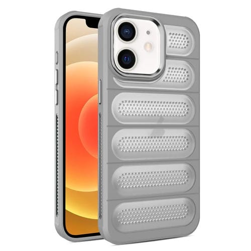 Caja para teléfono iPhone 12 Malla translúcida Armadura de enfriamiento (Gris)