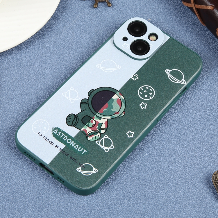 Funda de teléfono TPU para iPhone 12 Contraste de Color Patrón de Astronauta (Verde)