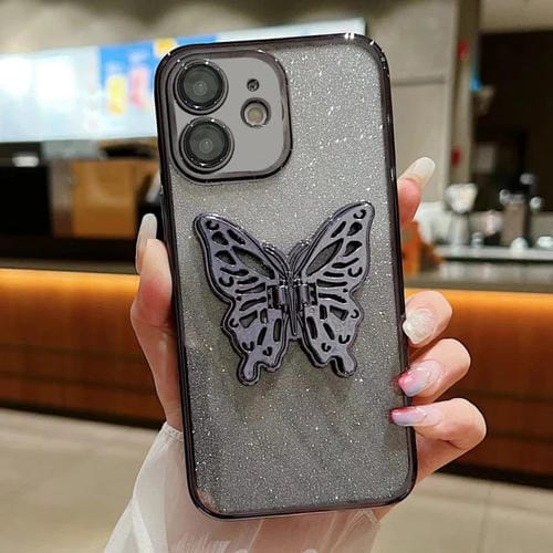 Estuche para teléfono TPU iPhone 12 Mariposa 3D Brillo Degradado Galvanizado (Negro Degradado)