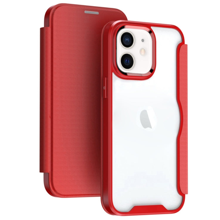 Funda de Cuero para iPhone 12 con Tapa Adsorción y Bloqueo Rfid (Rojo)