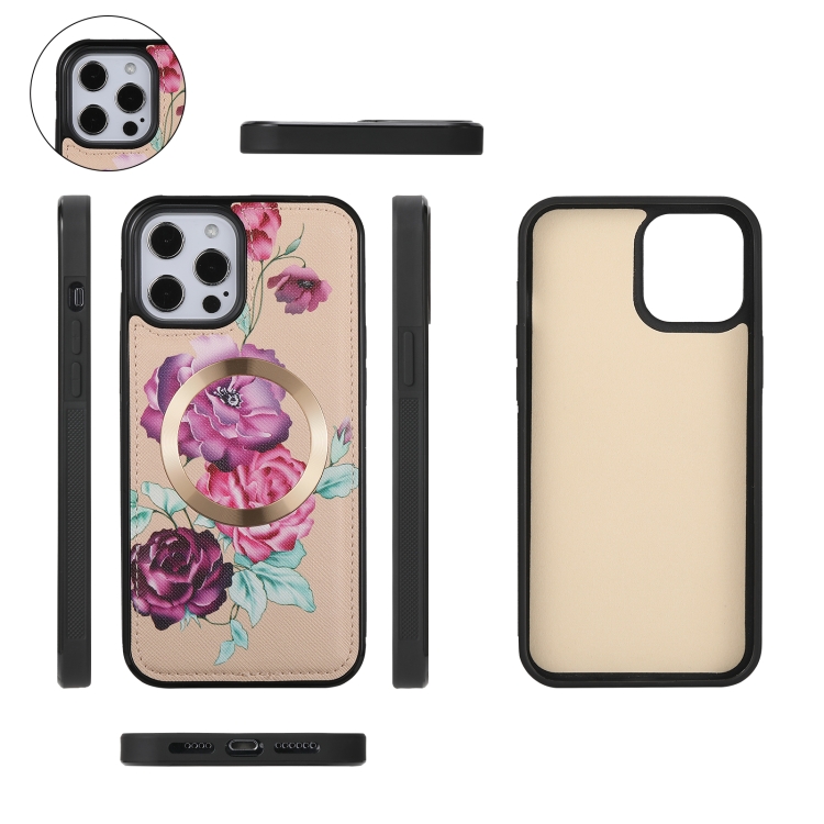 Funda de Cuero para iPhone 12 con Billetera y Cremallera Cruzada Multifuncional Magsafe Flower (Amarillo)