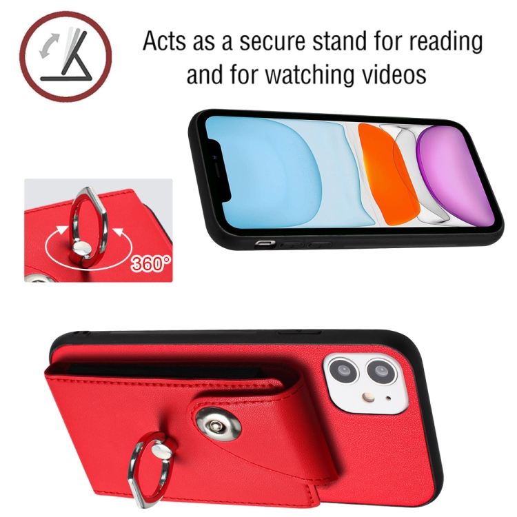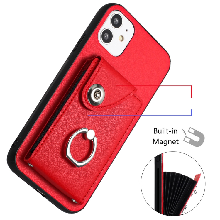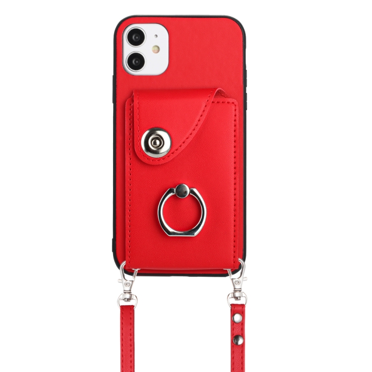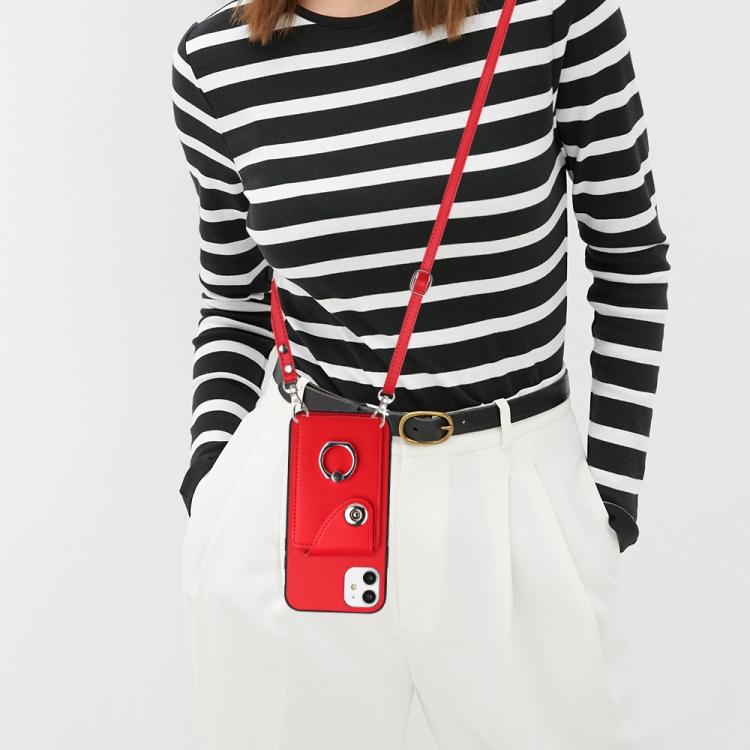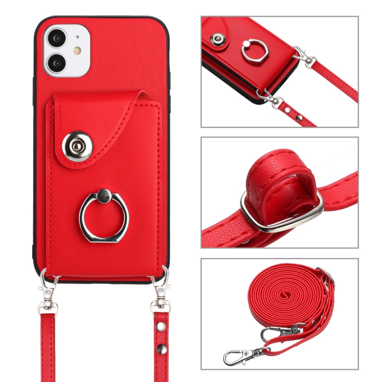 Funda para Teléfono iPhone 12 con Soporte para Anillo y Bolsa para Tarjeta con Cordón Largo (Rojo)